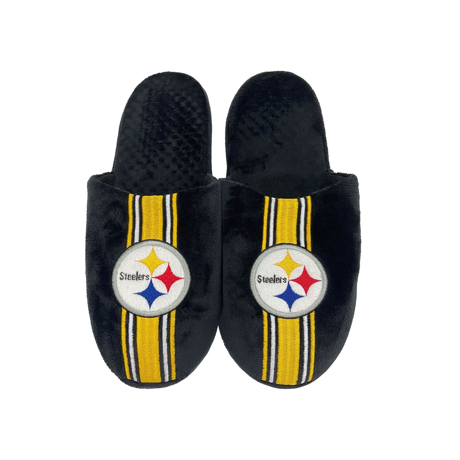 FOCO NFL Herren Slip-On Hausschuhe von deinen Pittsburgh Steelers im Team Stripe Style.