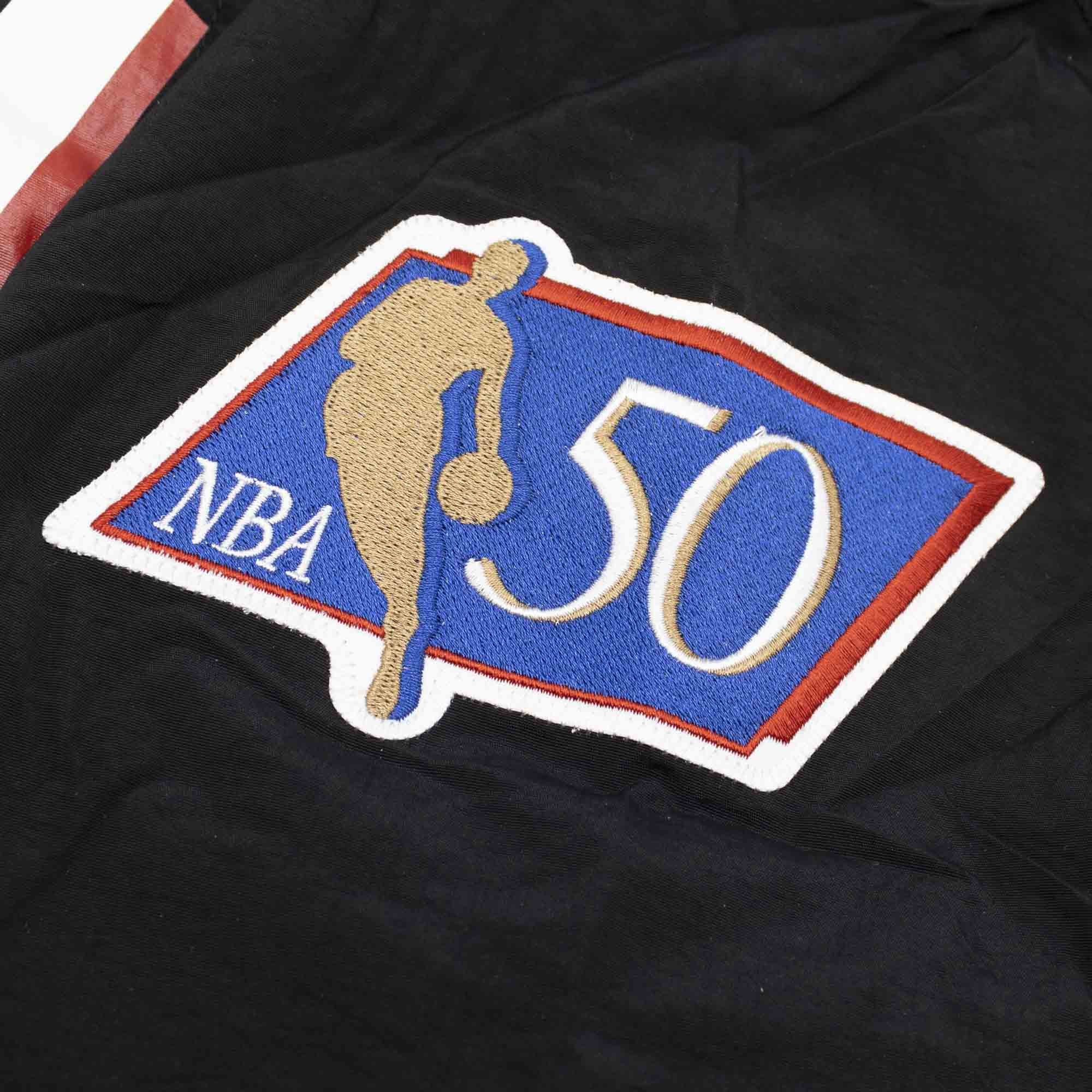 Diese Nylon Portland Trail Blazers 1996-97 Authentic Warm Up Jacke ist mit einem Netz-Innenfutter ausgestattet, welches einem beim Sport hilft, die Haut zu kühlen und trotzdem die Muskeln aufzuwärmen. Das NBA Logo ist auf der rechten Brust aufgenäht, der PORTLAND Schriftzug ist auf der gesamten Front aufgedruckt. Der rechte Ärmel ist mit dem Bucks Teamlogo bestickt. Als besonderes Extra ist der linke Ärmel zusätzlich mit dem NBA 50th Anniversary Logo bestickt. Teamname und die Jahreszahlen 1996-1997 sind als Tag im inneren Taillenband aufgenäht. Der Mitchell & Ness Schriftzug ist auf dem rechten Ärmelsaum aufgestickt. Vordere Knopfleiste und gerippter Ausschnitt an Hals, Ärmeln und Taillenbund.