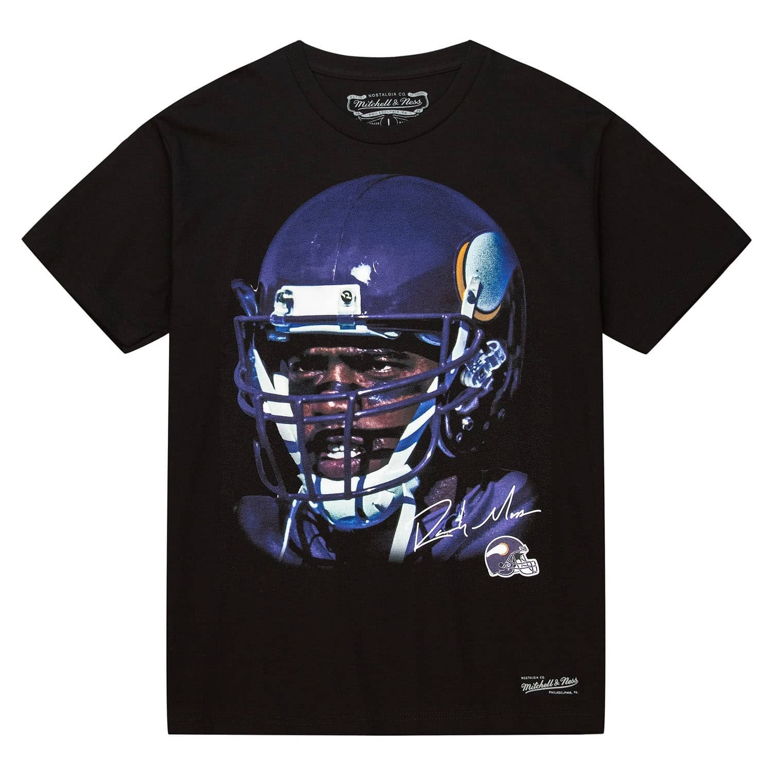 Mitchell and Ness Real Big Face NFL T-Shirt von Minnesota Vikings Legende Randy Moss.