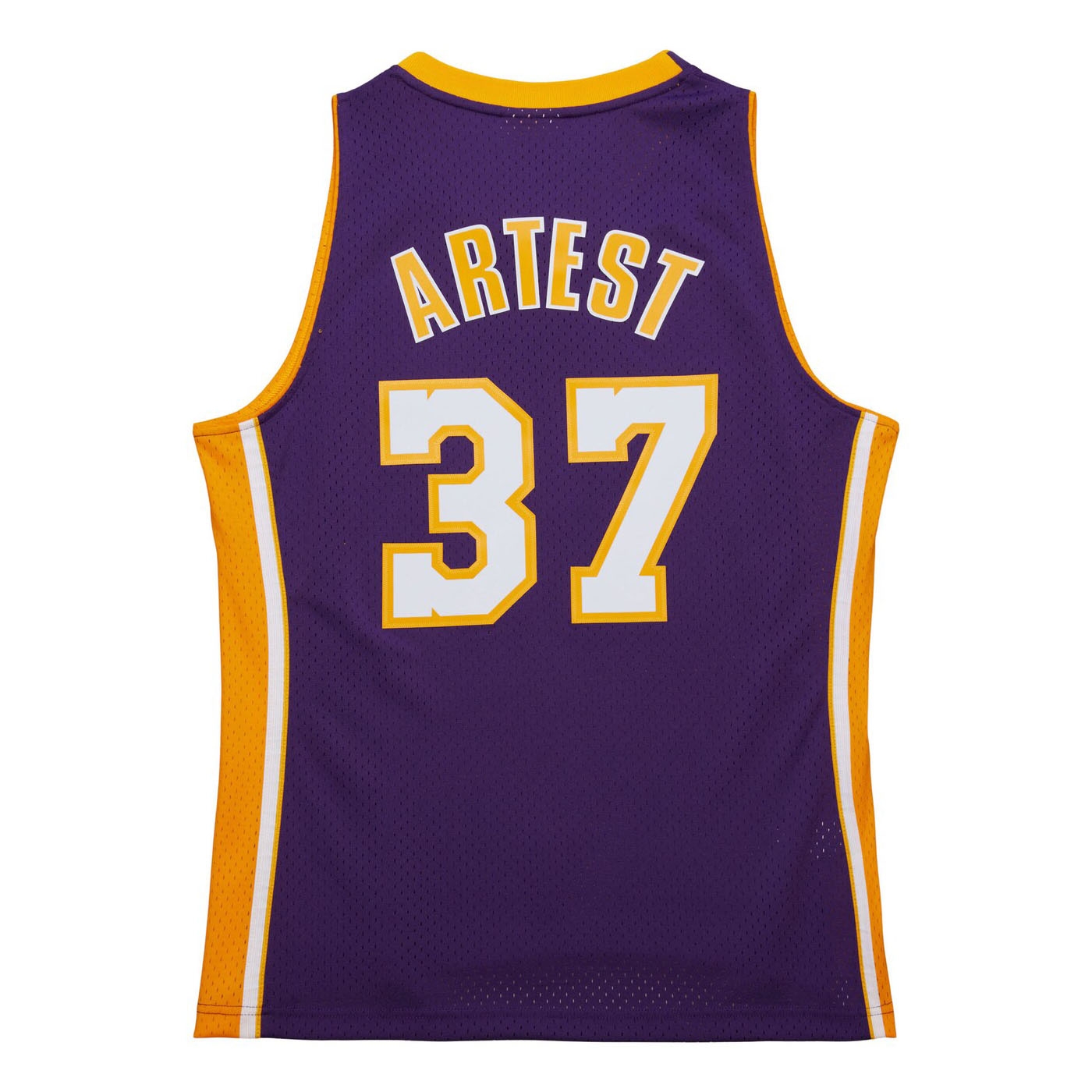 - Offizielles Swingman NBA-Trikot im klassischen Design der Los Angeles Lakers aus der meisterhaften Saison 2009-10, getragen von Ron Artest (#37), dessen unerschütterliche Verteidigung und Einsatz auf dem Spielfeld unvergessen bleiben.