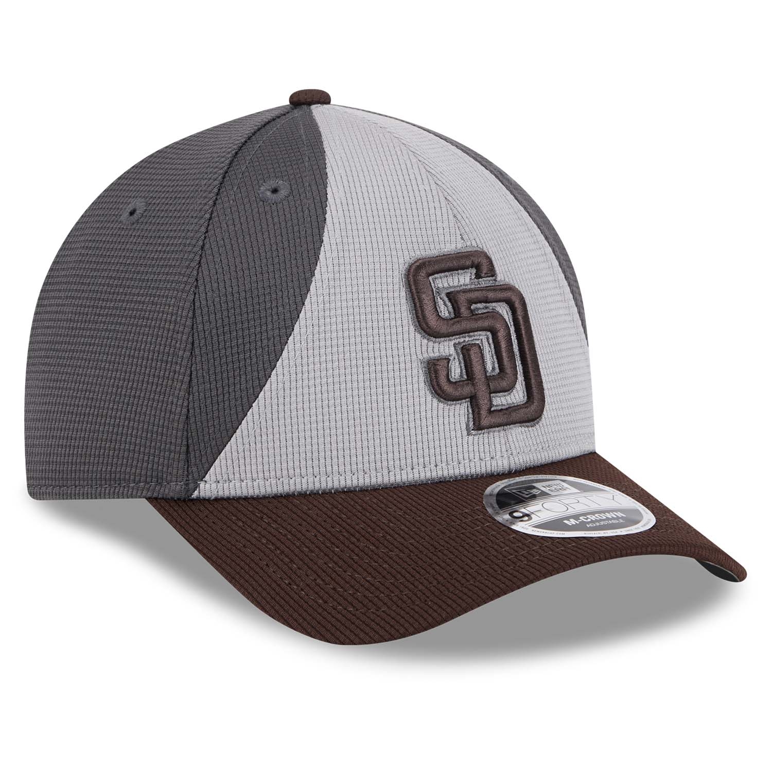 New Era Baseball Adjustable Snapback Cap von deinen San Diego Padres im 9FORTY M-Crown Style aus der grauen Colorway 2025 MLB Batting Practice Kollektion.