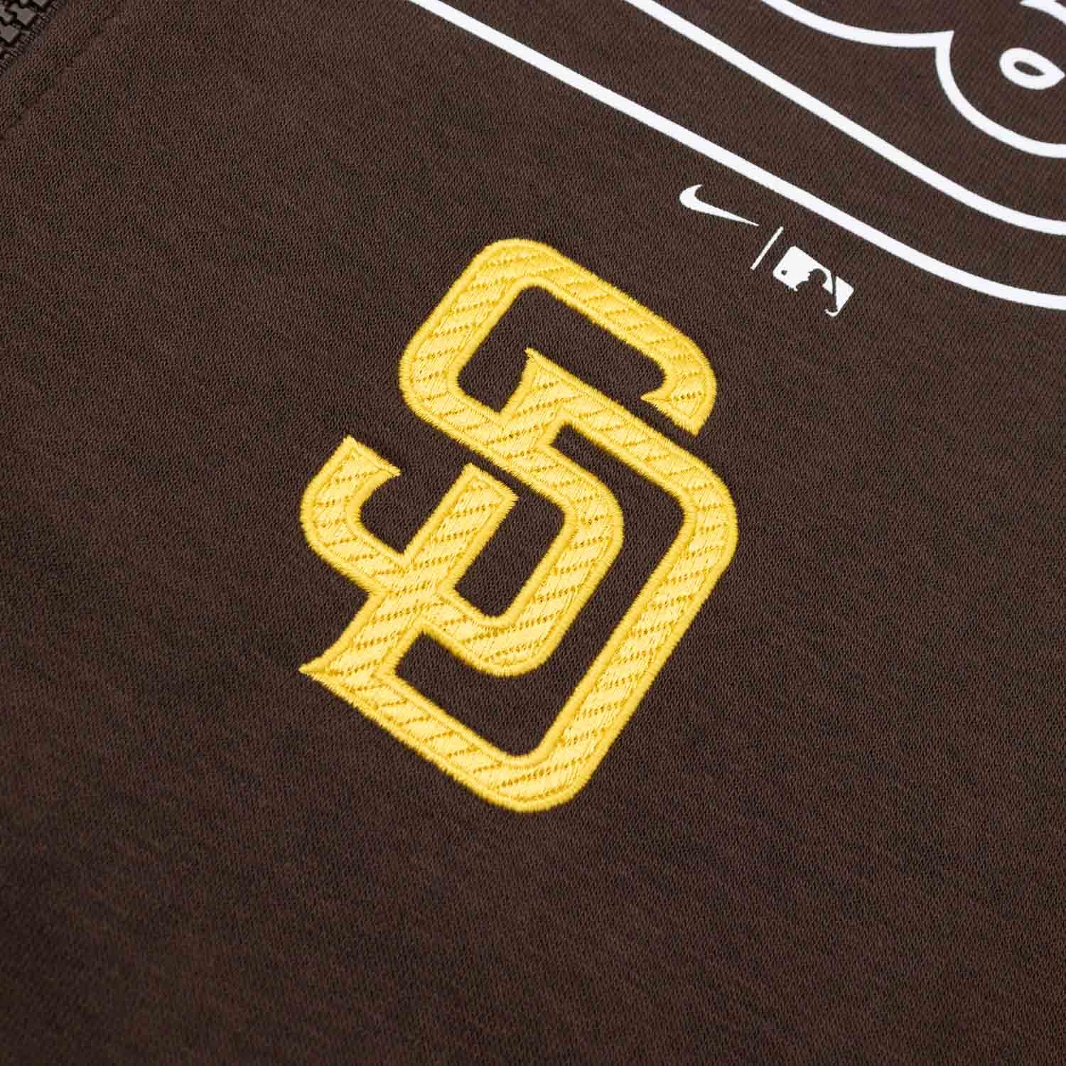 Der gestickte SD-Logo-Patch sowie der gedruckte Padres-Schriftzug und das Nike Swoosh runden den Look hochwertig ab.