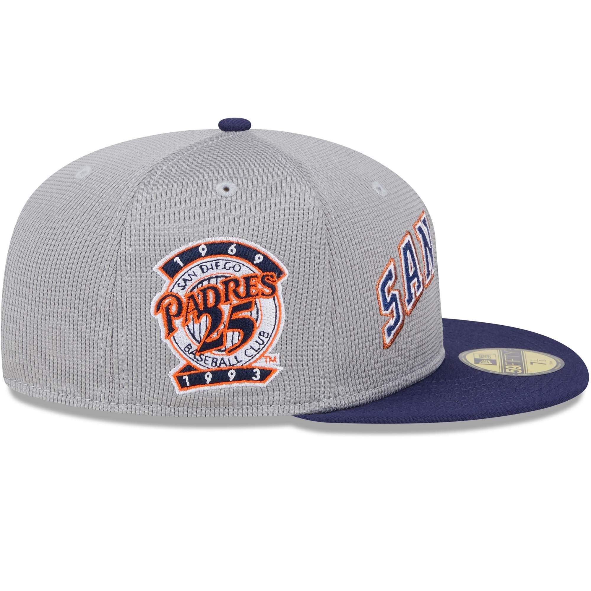 New Era Baseball 59FIFTY Fitted Cap von deinen San Diego Padres im grauen Pivot Mesh Design mit Anniversary Side Patch.