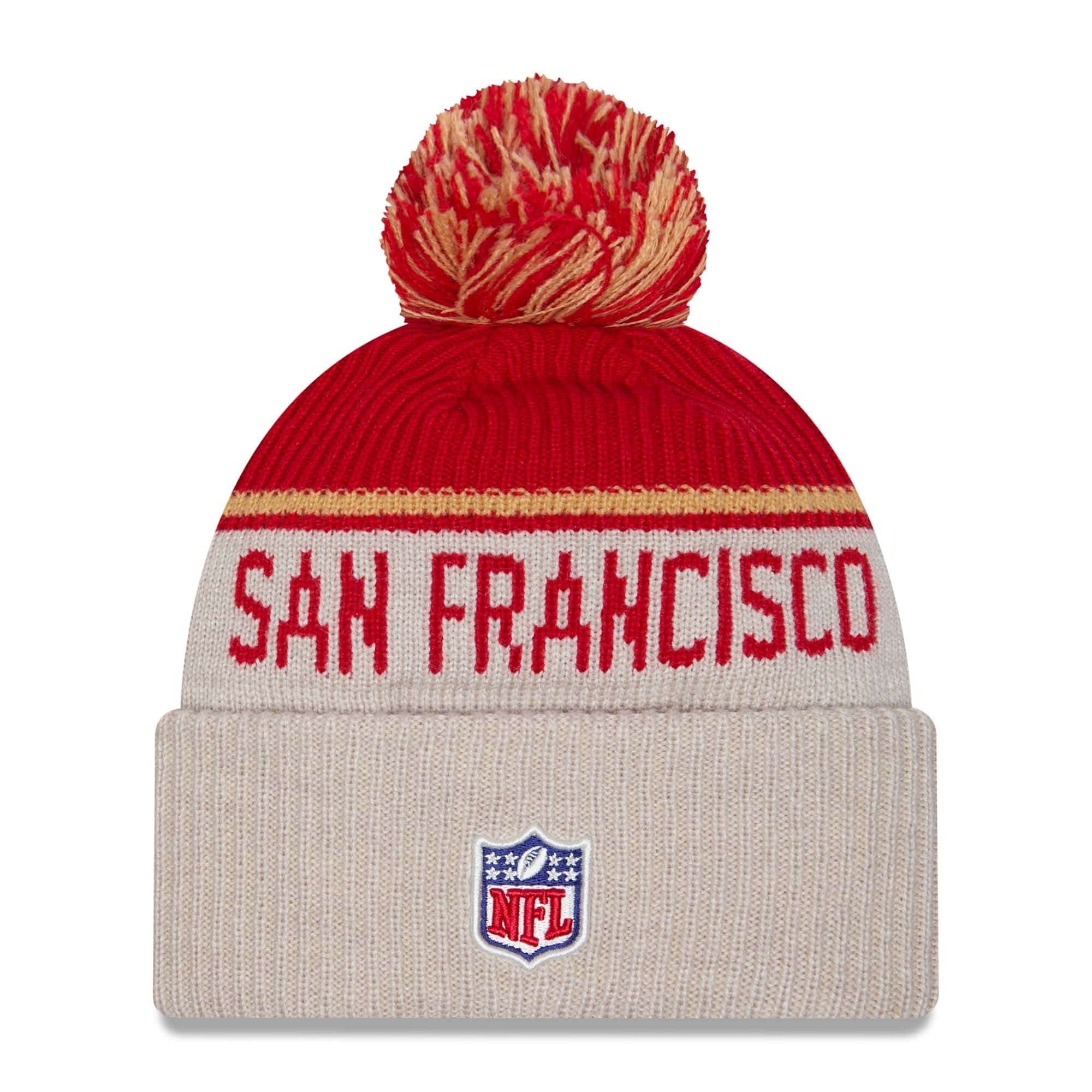 New Era American Football Pudelmütze von deinen San Francisco 49ers im Historic Throwback Style aus der offiziellen 2024 NFL Sideline Kollektion.