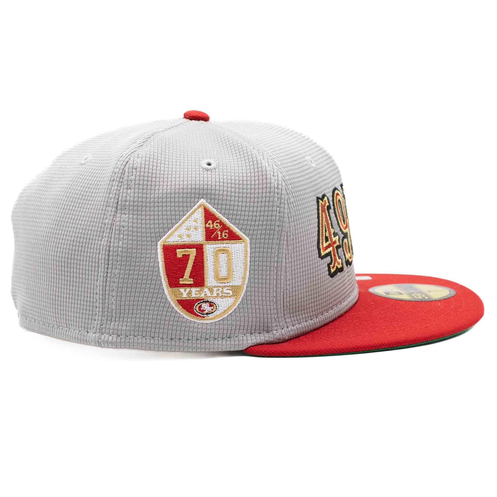 New Era Football 59FIFTY Fitted Cap von deinen San Francisco 49ers im grauen Pivot Mesh Design mit 70 Years Side Patch.
