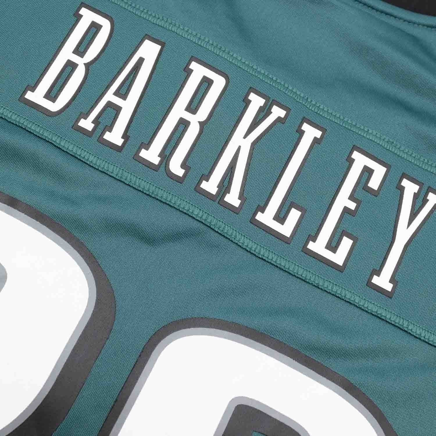 Nike NFL Herren American Football Trikot von Philadelphia Eagles Running Back Saquon Barkley im dunkelgrünen Home Game Style.