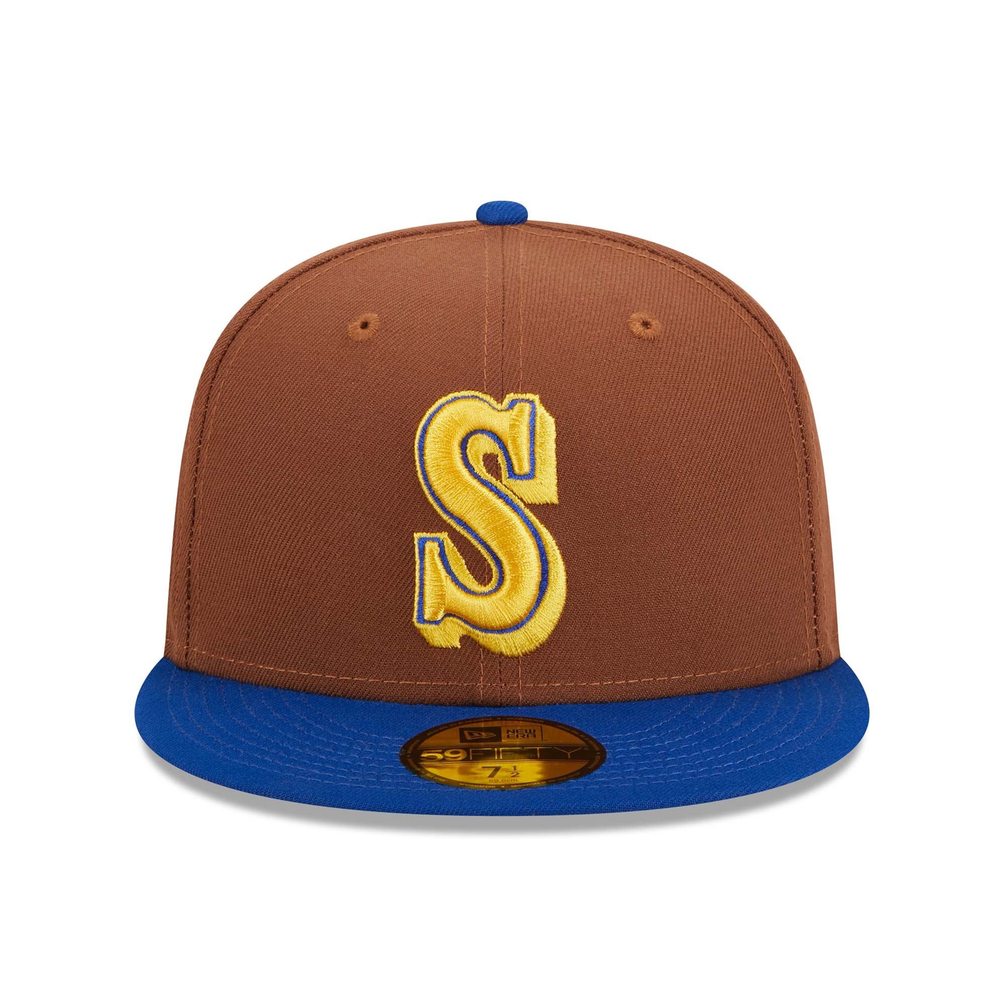 New Era MLB Baseball Cap von deinen Seattle Mariners im braunen 59FIFTY Fitted Harvest Style.