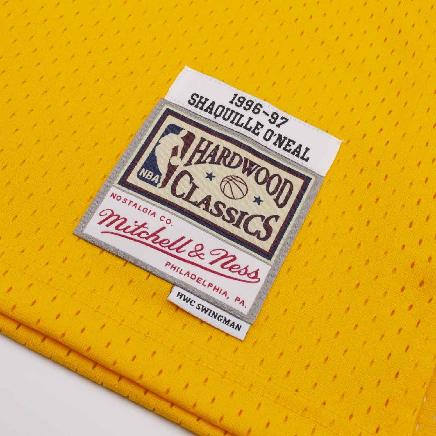 Mitchell & Ness NBA Herren Swingman Basketball Trikot von Shaquille O'Neal, Legende der Los Angeles Lakers aus der Saison 1996-97.