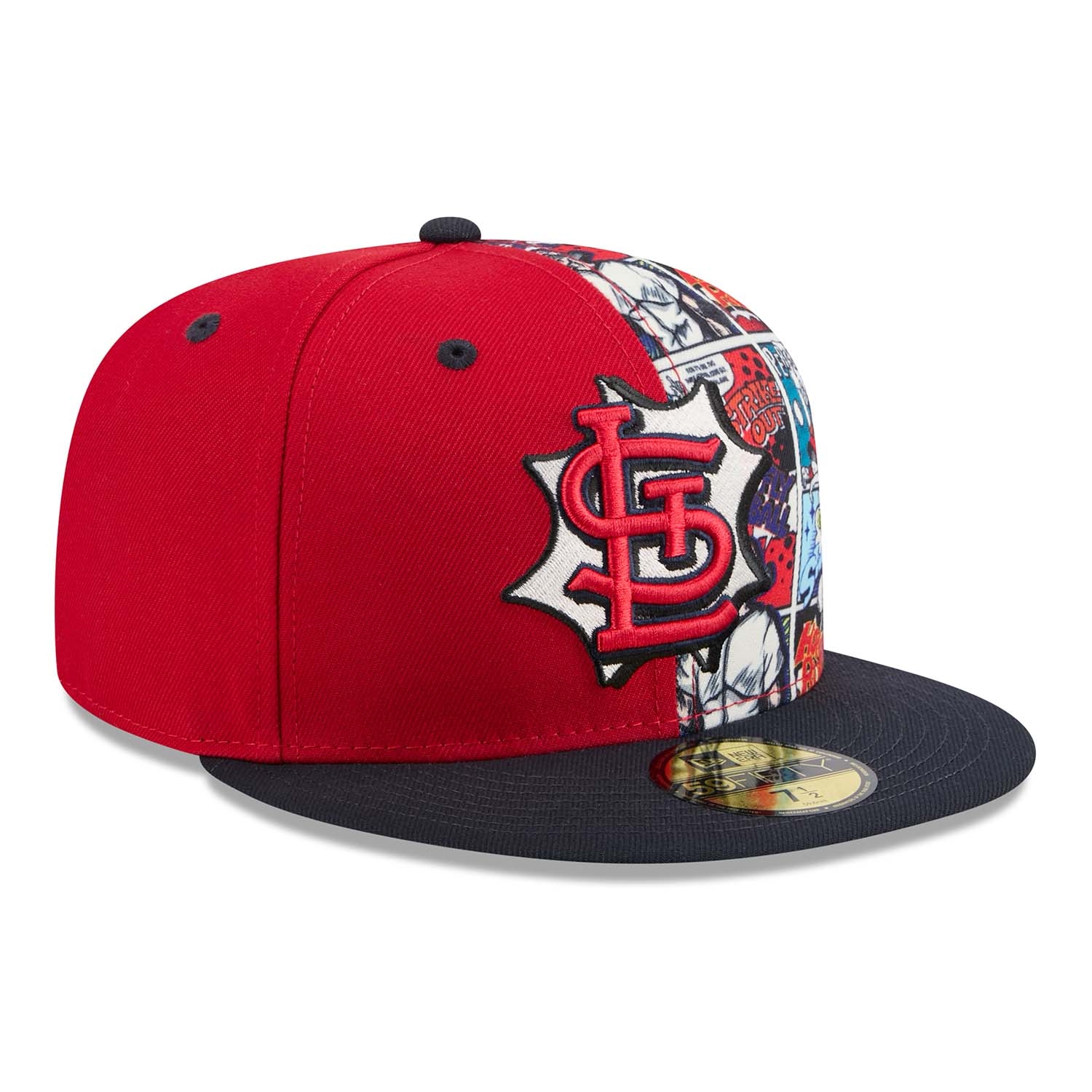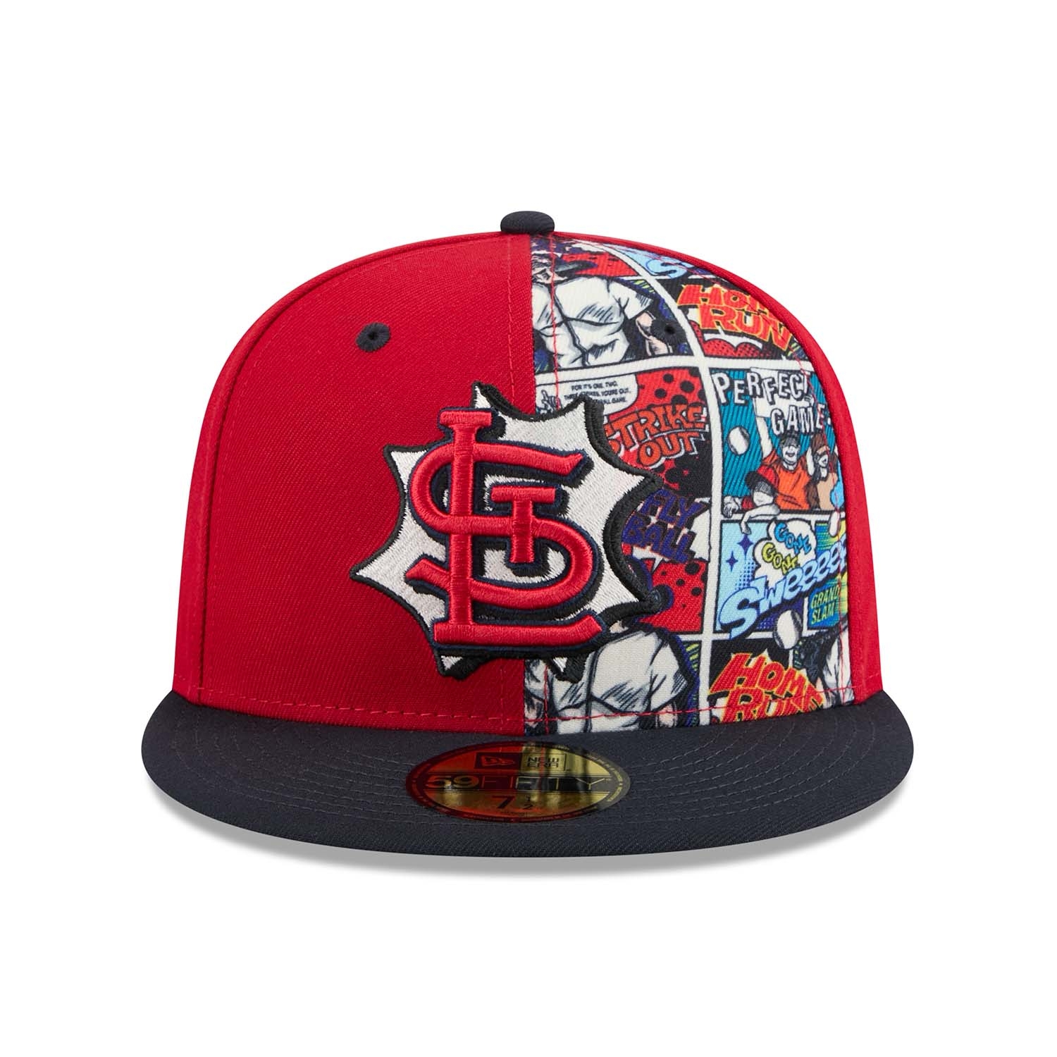 - St. Louis Cardinals Logo in 3D-Stick auf der Front - platziert auf einem kontrastreichen Allover-Comic-Print im Stil klassischer Graphic Novels.
