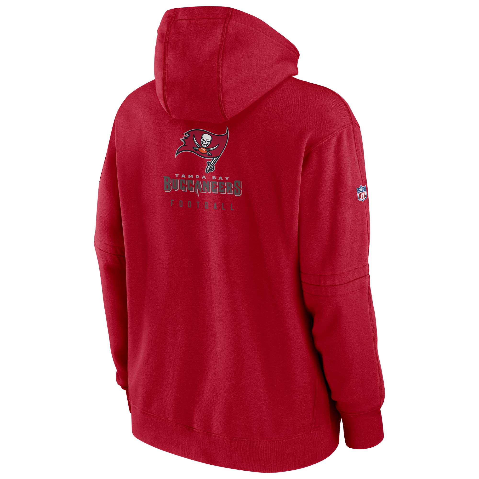 Der Tampa Bay Buccaneers Sideline Club Hoodie wurde für die Bedürfnisse von NFL Trainern und Spielern entwickelt. Sein Fleecefutter ist ideal für kaltes Wetter, aber abnehmbare Ärmelnähte ermöglichen die einmalige Option, diesen Pullover in einen Kurzarmstil zu verwandeln. Die Vordertasche dieses Hoodies verfügt außerdem über eine Innentasche für Medien zur Aufbewahrung kleiner Gegenstände wie Telefone und Kreditkarten. Die angenähte Kapuze ist vollständig mit Baumwolle gefüttert.