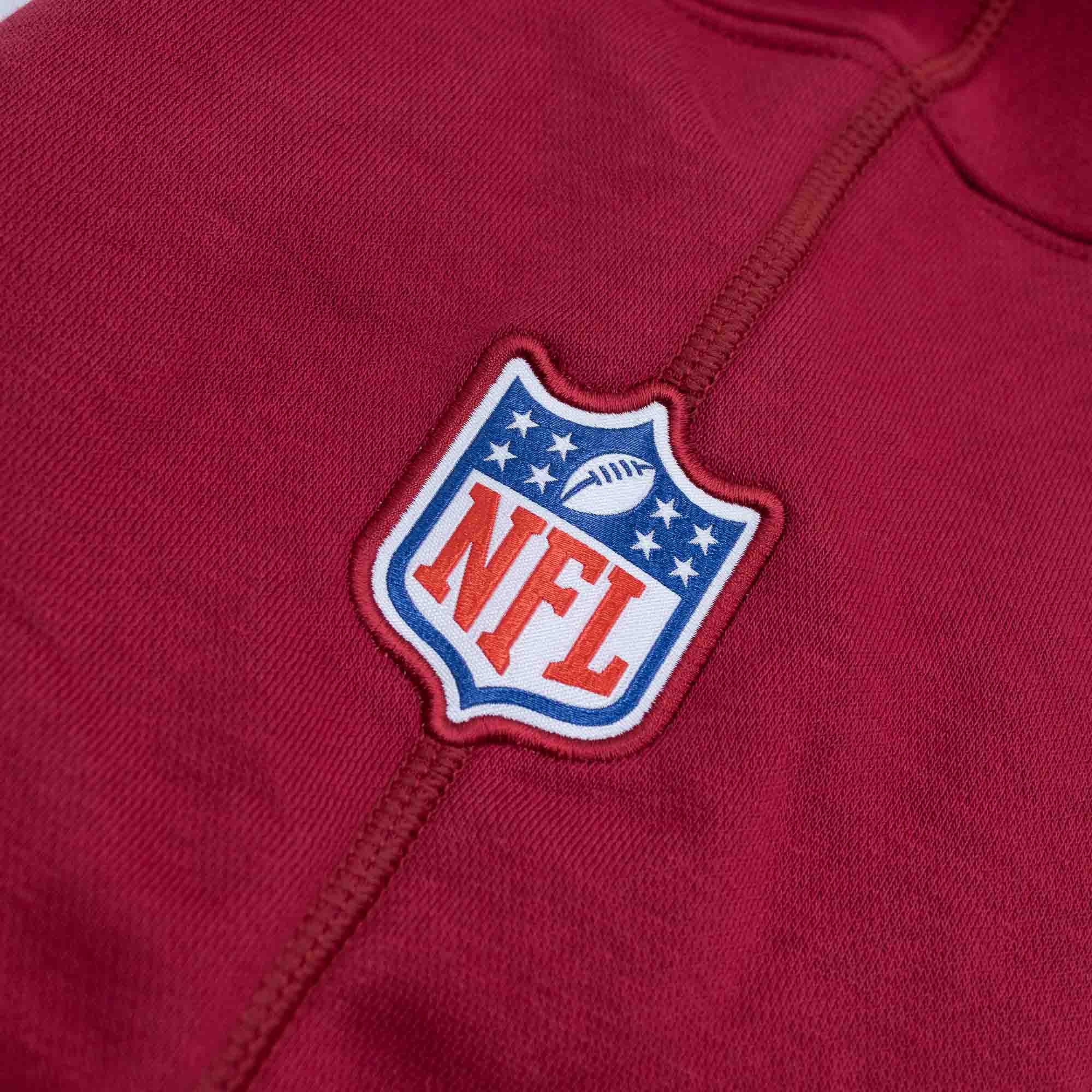 Der linke Ärmel ist mit einem gestickten Nike-Logo versehen, der rechte Ärmel mit dem offiziellen NFL-Shield. Mit Team-Logo-Druck auf der linken Brust und großem Logo-Wordmark-Kombinationsdruck auf der Rückseite. Mit dem entspannten Schnitt bietet der Pullover für alle Football Fans genügend Bewegungsfreiheit. Egal ob Tailgaiting, Alltag oder NFL Sidelines, seit Teil der NFL Season mit diesem offiziellen Sideline Hoodie.