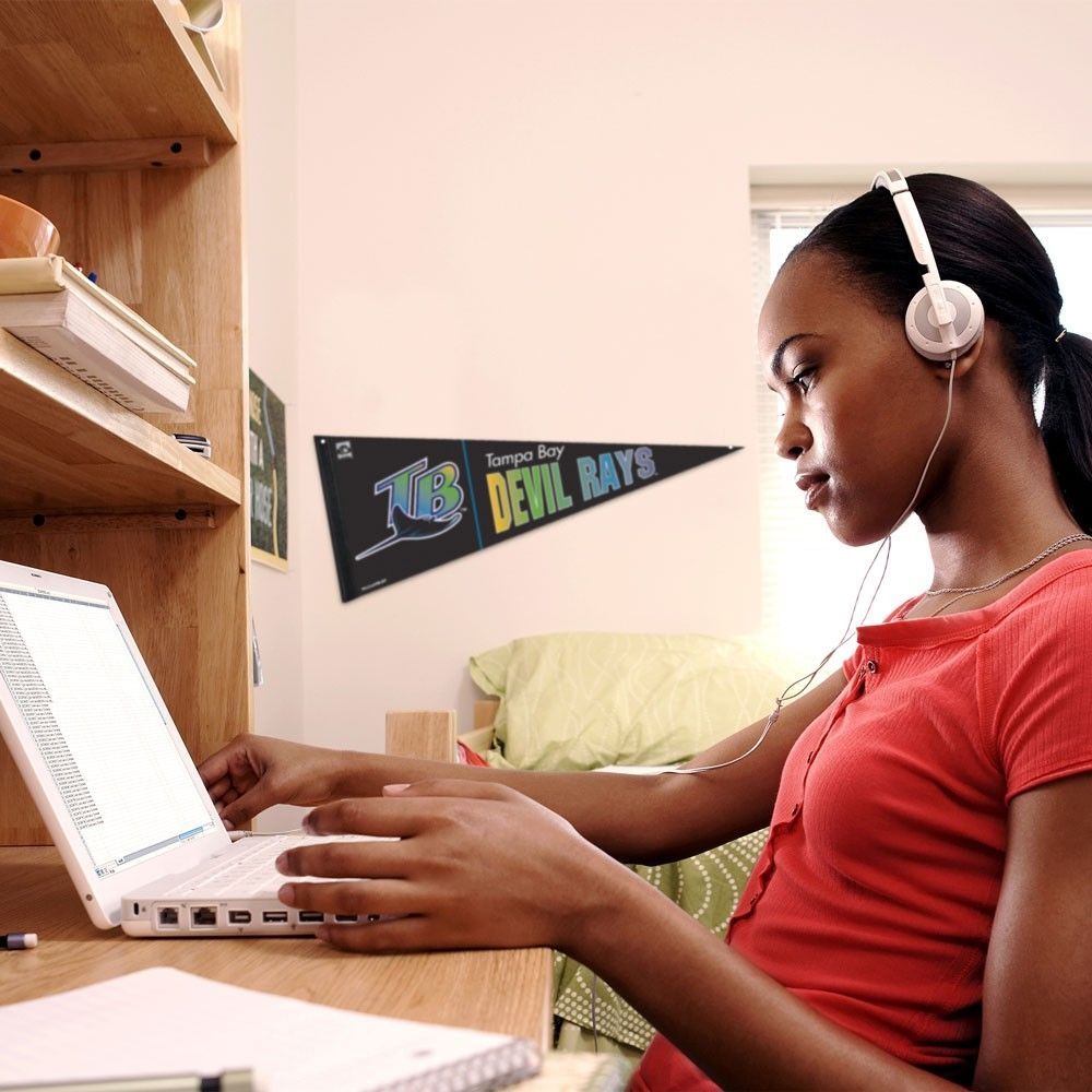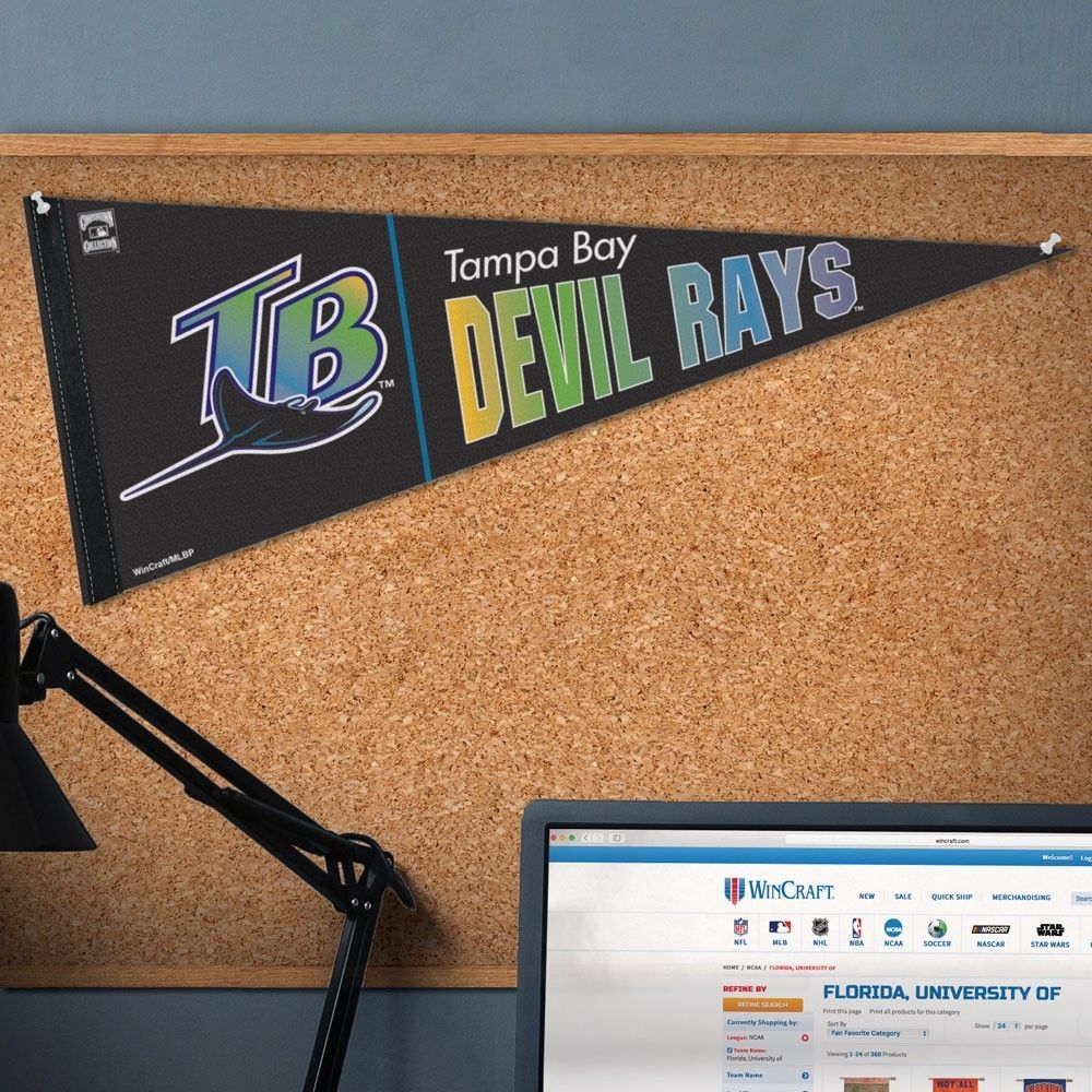 Hochwertiger Baseball Wimpel von WinCraft im klassischen Tampa Bay Devil Rays Teamdesign. Der Wimpel besteht aus einem robusten Filzstoff und kann dadurch problemlos aufgerollt und transportiert werden. Sport-Wimpel sind eine typisch amerikanische Form der Raumdekoration und können einfach wie ein Poster an eine Wand gehängt werden. Ein Must-Have für jedes Baseball Man-Cave.