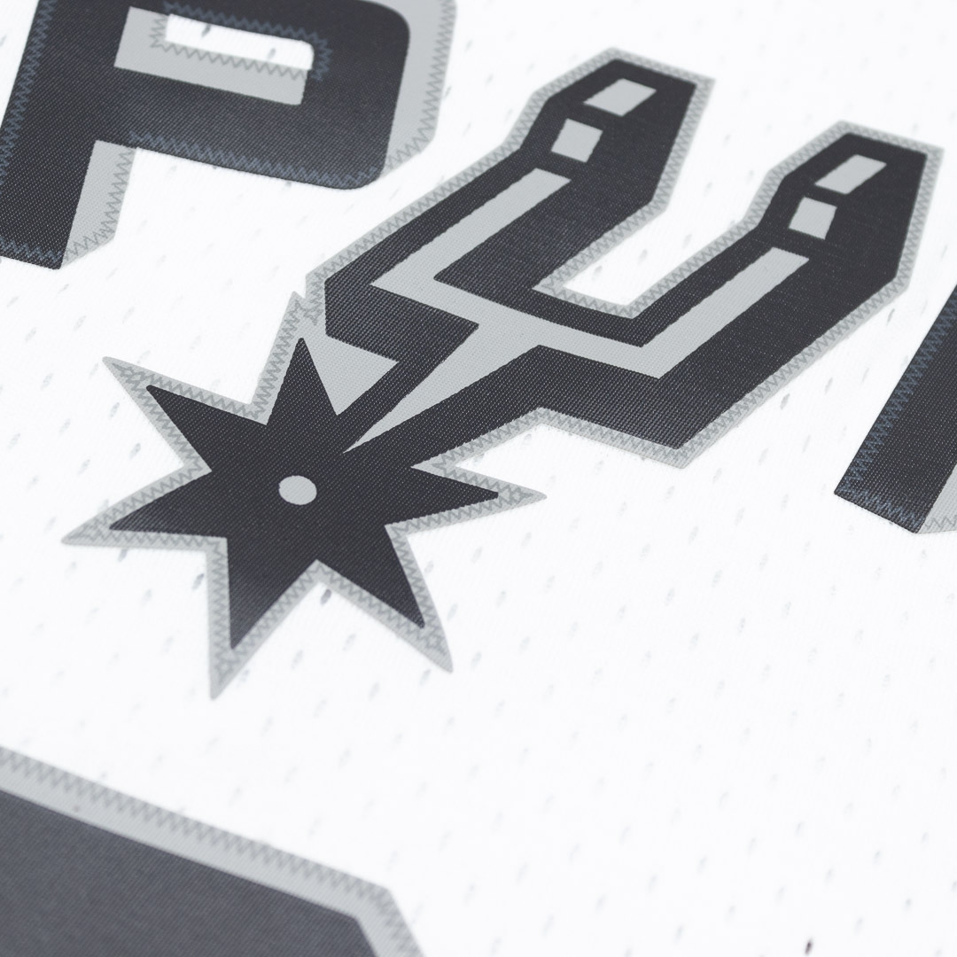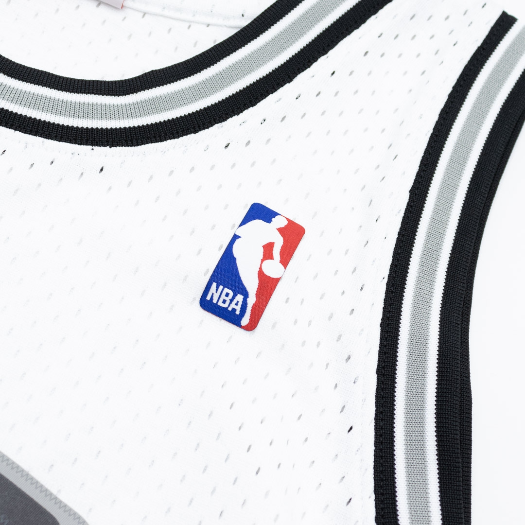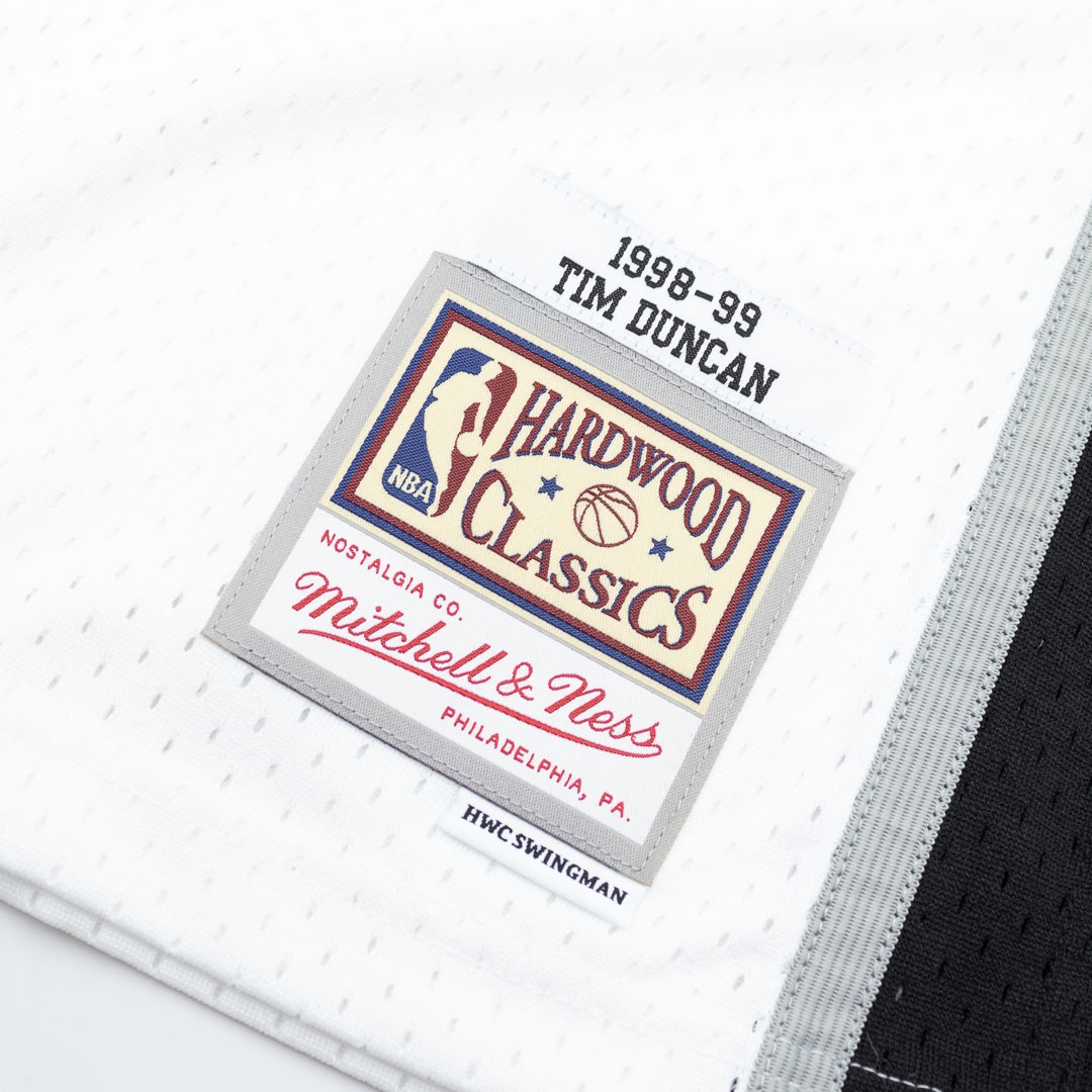 Klassisches Swingman NBA-Trikot im Design der San Antonio Spurs aus der Saison 1998-99. Das Trikotdesign entspricht den originalen Trikots der NBA-Profis aus dieser Ära. Alle Logos, Buchstaben und Zahlen sind als hochwertig bedruckter Webepatch im Thermodruckverfahren aufgebracht. Das Mitchell & Ness Hardwood Classics Label am Saum ist aufgenäht. Auf der linkem Brust befindet sich das NBA Logo. Die Mitchell & Ness NBA Trikots aus der Swingman Collection sind ein Must-Have für jeden Basketball Fan und eine Erinnerung an die besten Spieler und Legenden dieses Sports wie Tim Duncan!