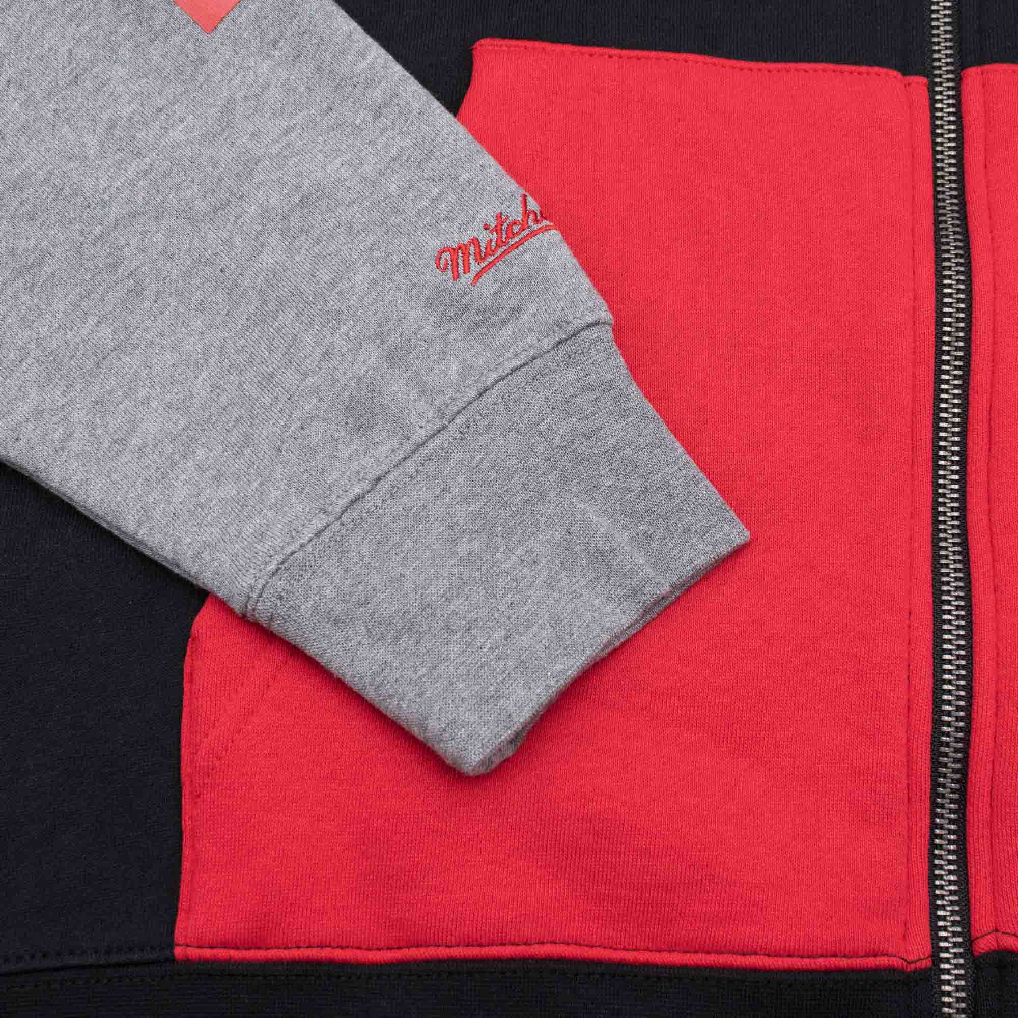 Mit dem dreifarbigen Mitchell & Ness NBA Hardwood Classics Zipper unterstützt du deine Toronto Raptors in Style! Die grauen Ärmel sind hochwertig mit dem Team-Schriftzug und Gründungsdatum bedruckt, während die linke Brust mit dem klassischen Teamlogo bestickt ist. Der NBA Zipper bietet dir mit dem durchgehenden Reißverschluss, den zwei seitlichen Taschen und der farblich abgesetzten Kapuze optimalen Komfort. Das hochwertige Baumwoll-Polyester-Fleece mit der kuscheligen Innenausstattung sorgt für wärmenden Komfort und ist einfach zu pflegen. Abgerundet wird das Retro-Basketballdesign mit dem gestickten Mitchell & Ness Schriftzug am rechten Ärmel und dem NBA Hardwood Classics Patch im Nackenbereich.