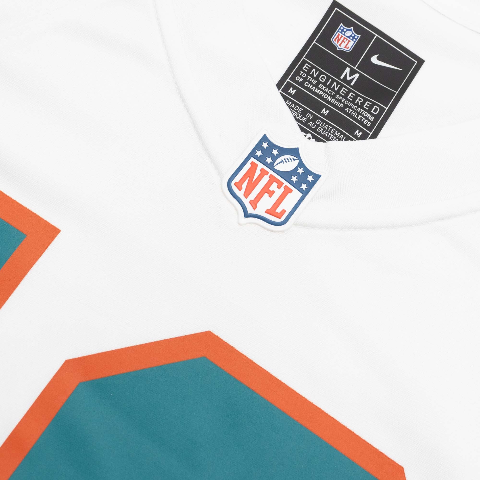 Die Game NFL Trikots sind in hochwertiger Nike-Qualität produziert und sind ein absolutes Must-Have für jeden passionierten American Football Fan. Dieses Miami Dolphins NFL Fan-Trikot besteht zu 100% aus Performance Polyester mit recycelten Fasern aus der Nike Move to Zero Kollektion. Alle Logos, Ziffern und Buchstaben sind hochwertig aufgedruckt (Screen-Printed) und entsprechen dem offiziellen Design der original NFL-Spieltrikots. Das Trikot hat die Nummer 10 und den Spielernamen HILL aufgedruckt, das Nameplate ist sogar extra aufgenäht. Das NFL-Shield am Kragen ist genauso wie das Equipment-Label am Saum aufgenäht.