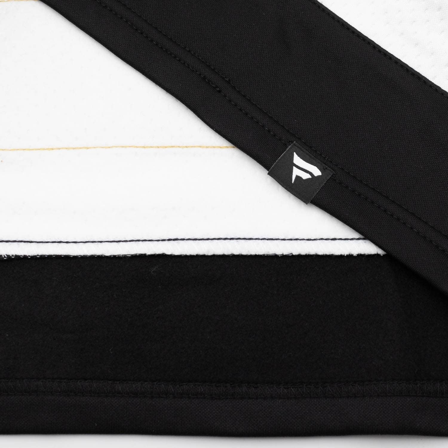 - Aufgenähte Streifen: Authentische, aufgenähte Streifen an Ärmeln und Bund im klassischen NHL-Jersey-Look.