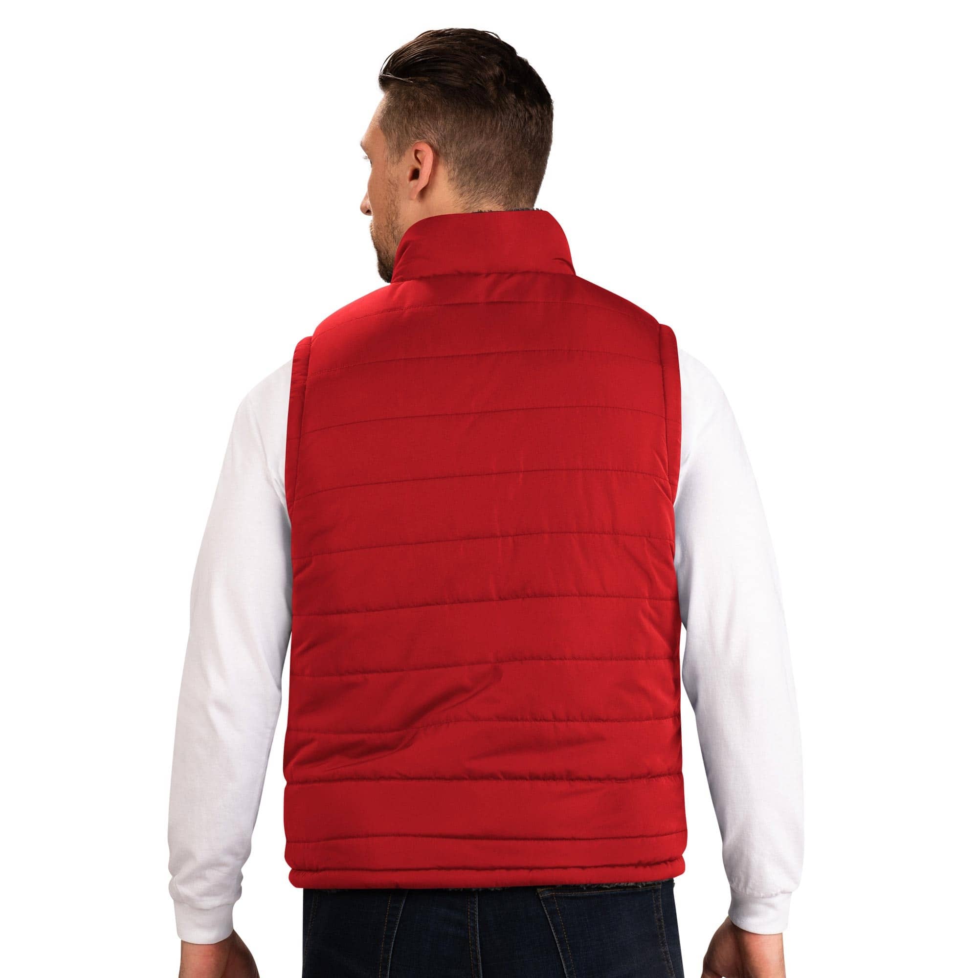 G-III Sports by Carl Banks NHL Herren beidseitig tragbare Reversible Winter Weste im flauschigen Sherpa Power Hitter Look von deinen Washington Capitals.