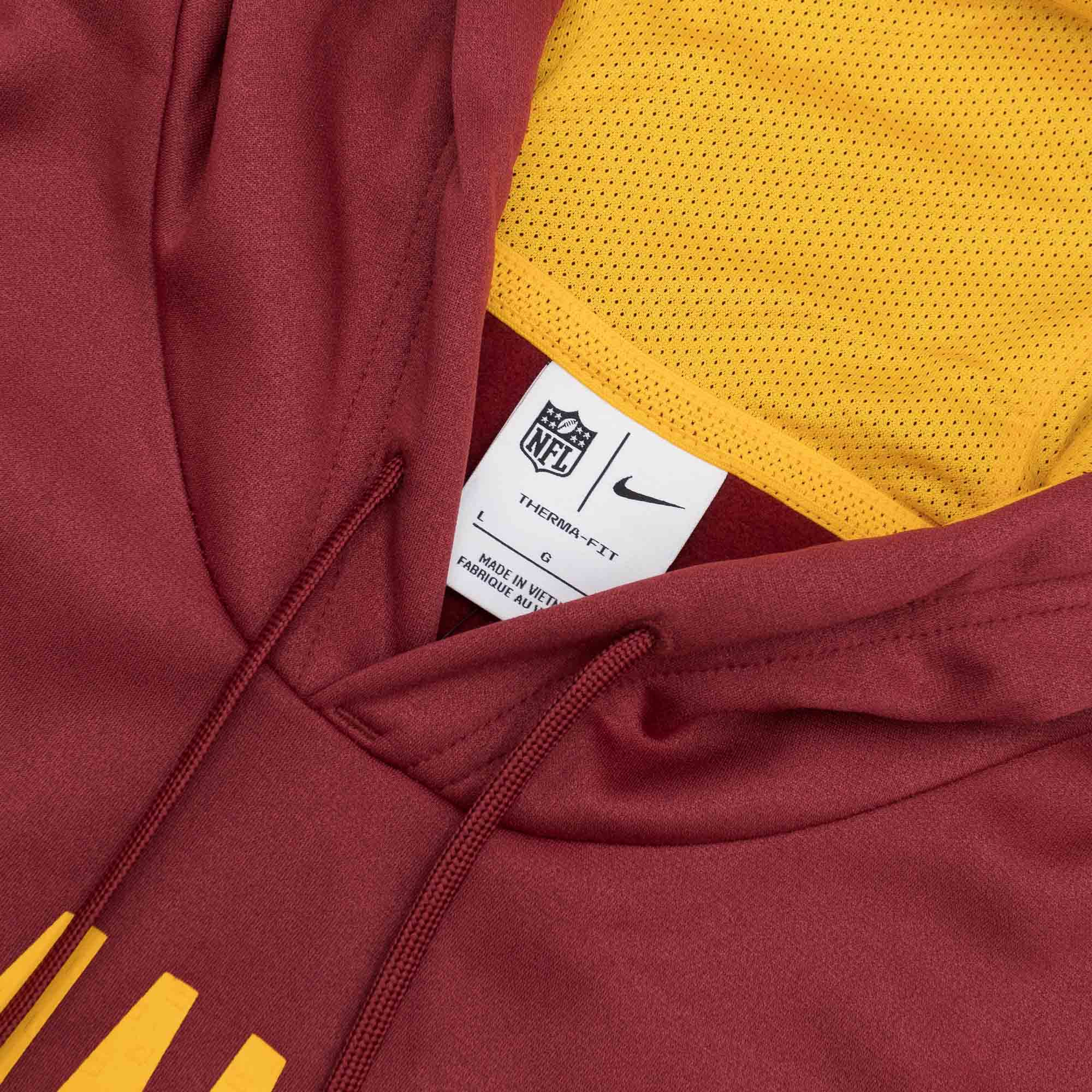 Nike Therma-FIT American Football Sweatshirt Hoodie von deinen Washington Commanders aus der offiziellen 2022 NFL On-Field Sideline Kollektion.