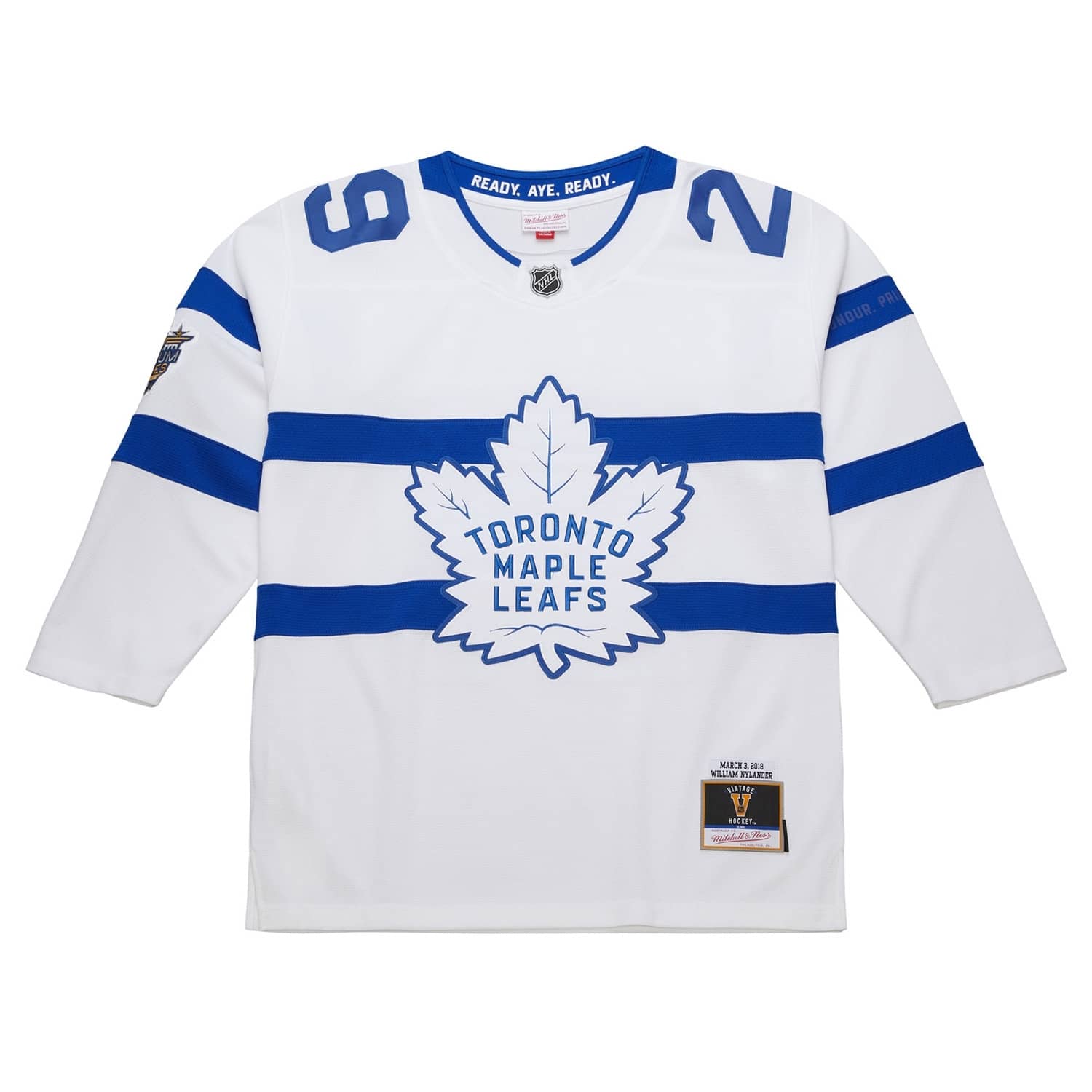 Mitchell & Ness NHL Herren Power Play Eishockey Trikot von Toronto Maple Leafs Superstar William Nylander im 2018 Stadium Series Design.